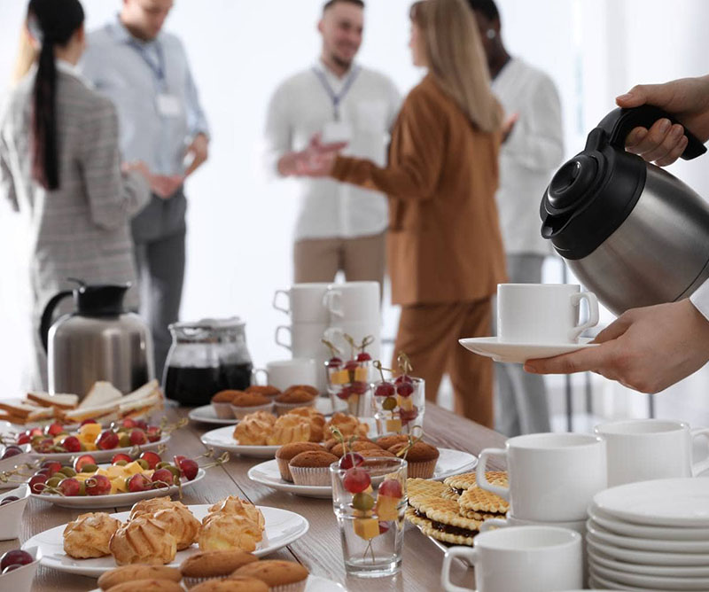 Llevamos nuestro servicio a cualquier lugar: desde tu oficina hasta el sitio que elijas para tu evento. Nuestros diversos menús de desayunos, cócteles, buffet y cenas de gala garantizan una experiencia excepcional para tus invitados, ya sean empleados o clientes potenciales.